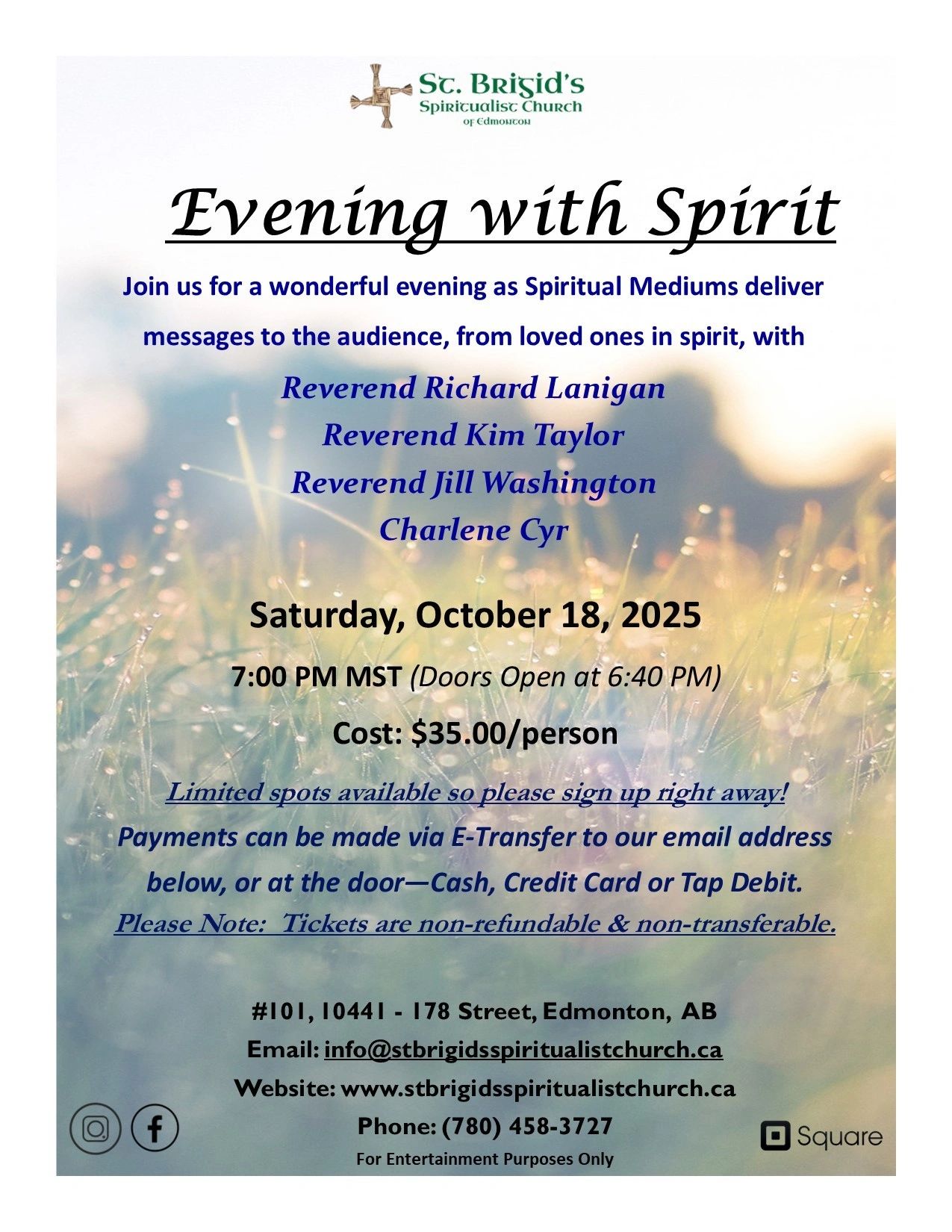Every Sunday, (excluding long weekends which will be virtual via Facebook Live) we hold a complete spiritual service which includes a spiritual healing for the group that are present and for anyone whose name is put forward from the congregation that requires healing.